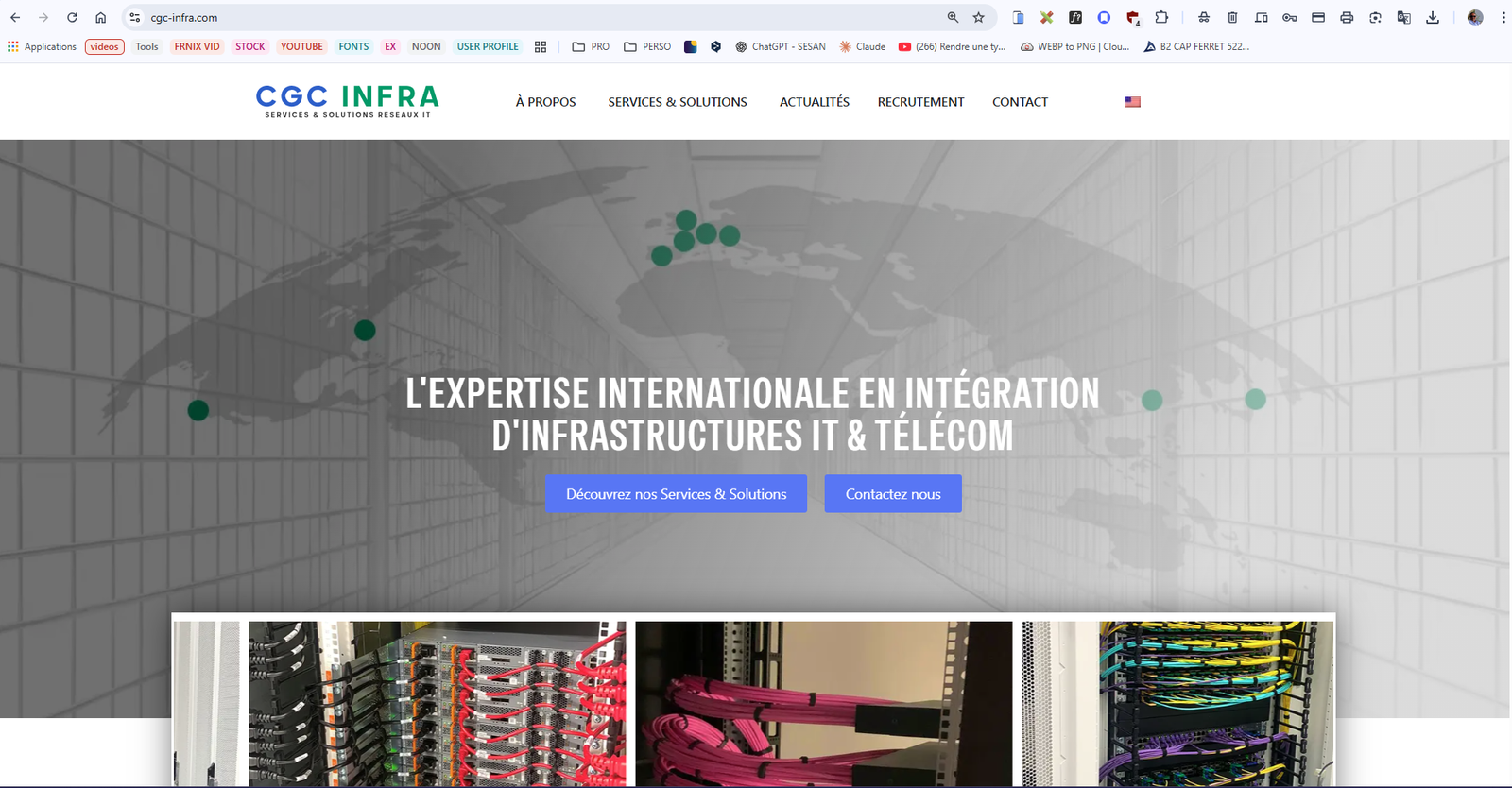 Défi : Créer un site corporate bilingue pour un intégrateur international spécialisé dans les infrastructures réseaux IT et télécom, capable de valoriser une expertise technique pointue auprès d’une clientèle exigeante.