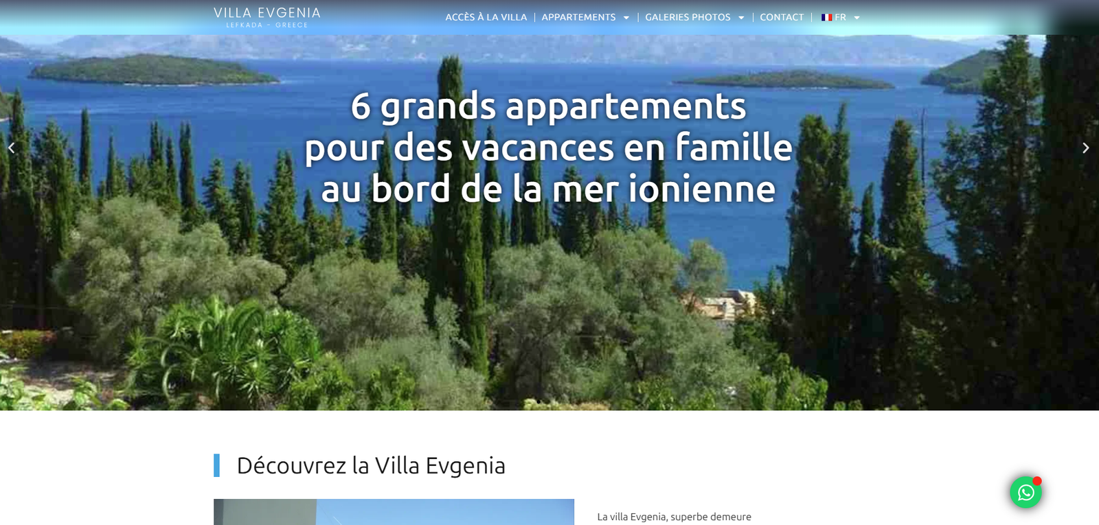 Défi : Créer un site de présentation et de location pour une villa de 6 appartements en bord de mer ionienne à Lefkada (Grèce), avec galeries photos, système de réservation et gestion multilingue.